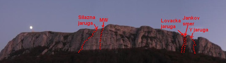 Stigli u petak noć. U subotu Nikola i Janko kreću u Direktnu Jarugu, a malo kasnije Siniša i ja u Borkovu. Nakon nekog vremena se nalazimo na vrhu i spuštamo niz Peđin žljeb. Nakon toga idemo malo zapadnije u stenu(još levo od Prvomajske), tamo Nikola i ja penjemo Y jarugu (Nikola vodi interesantan cug sa prečkom ispod previsa, ja posle ko po jajima preko nekog šodera, da bi imali lep izlazni i osunčani žljeb do kraja stene!...), a Janko i Siniša penju Jankov smer, koji ide preko ploča između Lovačke i Direktne jaruge. Svi zajedno otpenjavamo niz Lovačku jarugu. I fiju ka domu.