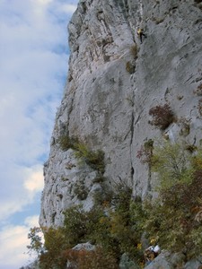 verujem da nismo otisli po vodicu u trecoj duzini po pukotini desno nego da smo napravili tezu varijantu levo, na kljucnom mestu ostavili smo dva klina koja nismo mogli da izvadimo, izuzetno kvalitetan smer, potrudicemo se da ga ponovimo slobodno