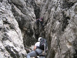 a ubrzo nailazi cug tezine 3 UIAA gde se navezujemo i obuvamo penjacice.