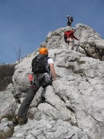 - Rastkova (IV+, III, 100m) sa ulaznom travezom 20m kao sto u originalu smer ide. Ulaz za sve tri navedene smeri polazi sa istog mesta. Prvi cug vodio Aleksa, potom Nikola. Karakterističan ključni detalj smeri kod pećine svi smo prošli ne ulazeći u samu pećinu već idući široko i otvoreno po čvrstoj steni levo od pećine.