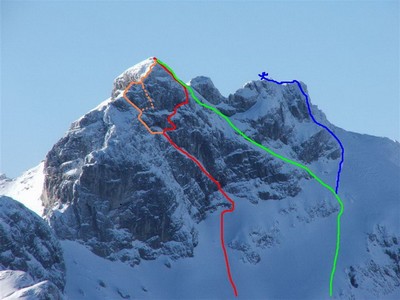 Bojan i Skedza silaze kroz Turski zljeb (400m, 45°), a Nikola i Igor kroz Posevnu Grapu (500m, 45°- 65°, M2).