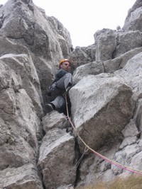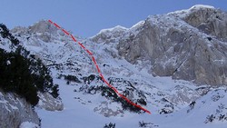 Namera je bila da penjemo Centralnu grapu u juznoj steni Mrzle Gore ali smo greskom popeli tezu smer (500m, M5+, M3/45° - 60° led i sneg).