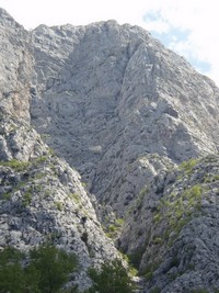 19.4. U Zadru nas je sačekalo kišovito i relativno hladno vreme koje se ubrzo popravilo. Od lokalaca smo čuli da je celog marta i aprila skoro svakog dana padala kiša. Nakon smeštanja u apartman odlazimo do penjališta (oko 2km asfaltnim putem) i razmatramo šta bismo mogli penjati tog dana. Čim se vreme popravilo, gomila penjaca se istog trenutka nasla u Paklenici, mahom u masivu Klanaca, ali i u ostalim stenama. Mi odlučujemo da se prvoga dana zagrejemo u Mosoraškom smeru (5c, 350m) u severozapadnoj steni Anića Kuka (stena Klin). Ulazimo u 13h u smer, a 2-3 cuga iznad smo imali jednu navezu koju smo ubrzo stigli. Smer je bio mokar u ključnom detalju ali smo s lakoćom za 3.5h rešili ceo smer. Stena je odlična, smer je opremljen, a težine su skromne osim u 2-3 cuga. Sa Anića Kuka silazimo po zapadnoj strani po via ferrati što je nešto teža varijanta nego preko vrha pa severo-istočnom stranom što je normalni put.