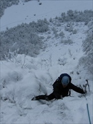 Nedelja: penjanje Skrivenog žljeba u Plećima D+/TD-, 240m, 5h ( Beka i ja ). Cilj je zapravo bio popeti jasno uočljiv Direktan žljeb u Plećima ali smo na samom ulazu skrenuli u levi Sriveni žljeb i umesto očekivanog lakog izlaza ( predpostavka na osnovu fotografija ) došli smo pod strehe, pa su nam Milan i Vanja Pejović odozgo dobacili fiksno uže. Uslovi u smeru su bili savršeni i predstavljaju kombinaciju tvrdog snega nagiba izmednju 50-70 stepeni, dosta leda nagiba 70-80 stepeni kao i stene težine UIAA IV+.Ima par detalja gde se izdvajaju 2 teža u vidu vertikalnih žljebova visine od 4 – 10 metara gde se penje po ledu i steni kao i pršičast sneg neposredno ispod streha zbog čega smo odustali od odpenjavanja i traženja izlalza već smo potražili pomoć prijatelja.