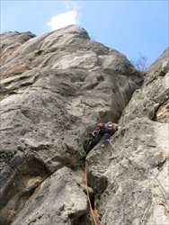 Društvo se okupilo 03.04. (subota) u Niškoj banji, a onda svako na svoju stranu – neki u Jelu a oni hrabri :) u Sićevo. U Sićevačkoj klisuri nas je dočekalo oblačno i vetrovito vreme, dok su drugari u ostatku sveta i Jelašnici uživali na suncu. Elem, to surovo :) vreme nas nije omelo u nameri da uđemo u Parti oko 11h. Prvi cug nas je dočekao hladno i nemilosrdno sa svojim detaljima, ali ni mismo bas za bacanje... Posle mučenja sa nekoliko detalja na prvih petnaestak metara, dve ploče sa mićicama na izlazu i sa vrlo malo mogućnosti za postavljanje međuosiguranja između detalja, cug je popet slobodno. U cugu se nalaze tri stara klina, ali se izgleda mogu koristiti, ostalo osiguranje čine dva do tri tanka i zakržljala drveta i dva - tri najviše mesta za glavljenje frendova. Drugi i treći cug (IV+, IV-) su pedstavljali pravo uživanje u penjanju do kraja smera. Na vrh smera smo izašli oko 15h. Tri abzajla oko drveta do podnožja smera i zadovoljstvo je moglo zvanično da se podeli.